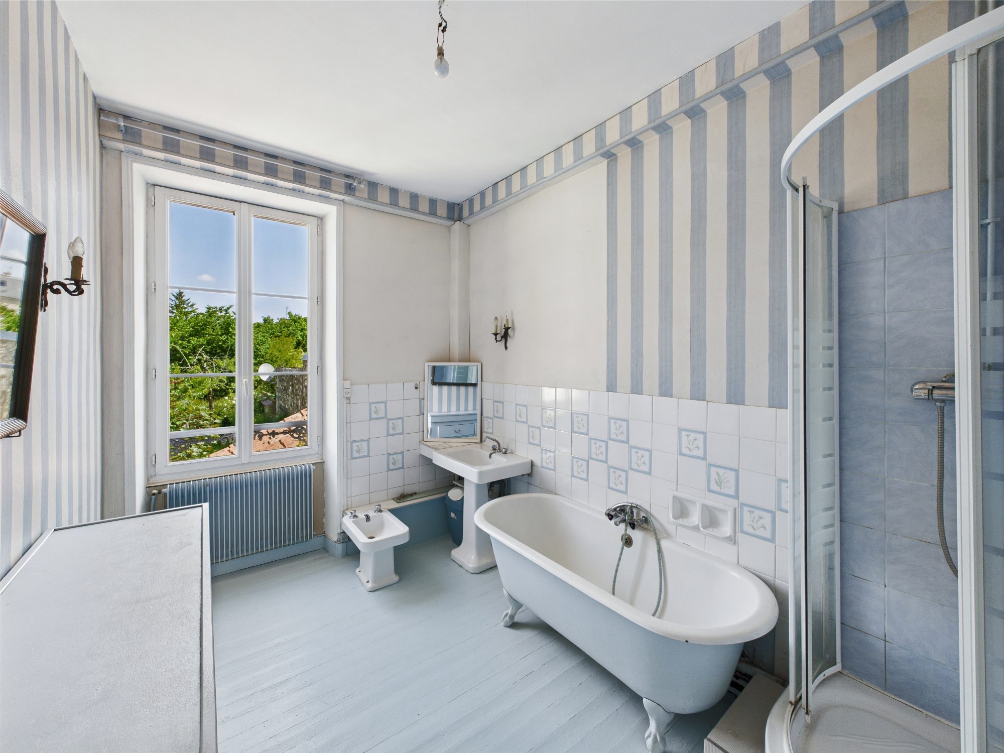 Au premier étage, cette maison vous offrira trois grandes et lumineuses chambres. Chacune bénéficie de hautes fenêtres laissant entrer la lumière tout au long de la journée. Elle est composée également d’une salle d’eau avec baignoire et d’un WC. Les parquets anciens et les cheminées d’époques ajoutent une note de raffinement et d’élégance. Idéale pour accueillir une famille, amis ou pour aménager un bureau confortable, ces pièces offrent un cadre de vie aussi apaisant qu’inspirant.