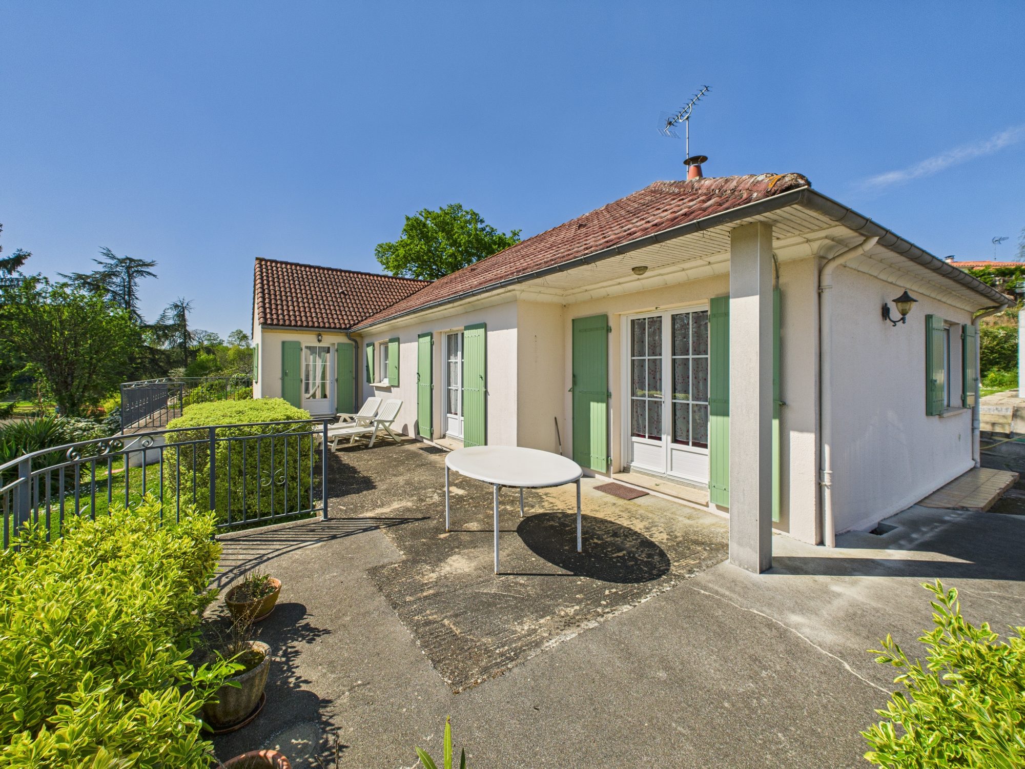 Côté extérieur, magnifique jardin entièrement clos, arboré et paysagé, équipé d’un forage, d’environ 2500 m²