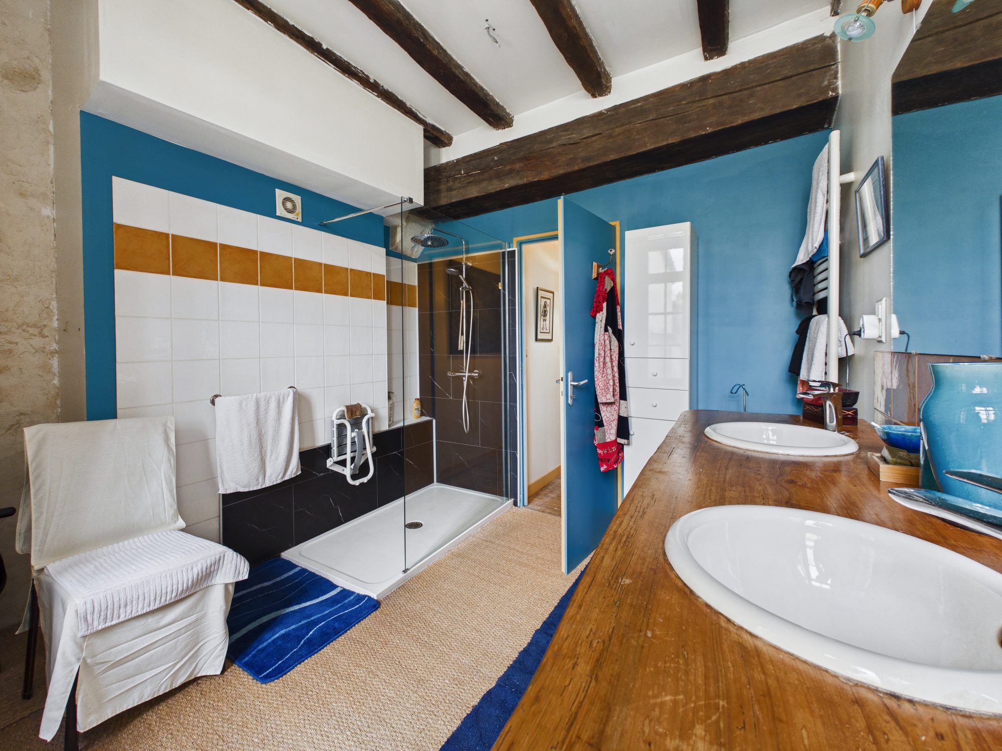 Au 1er étage vous trouverez un espace nuit avec deux chambres spacieuses et lumineuses sur parquet massif ainsi que deux salles d’eau et un WC, ainsi qu’un actuel dressing pouvant être transformé en chambre.