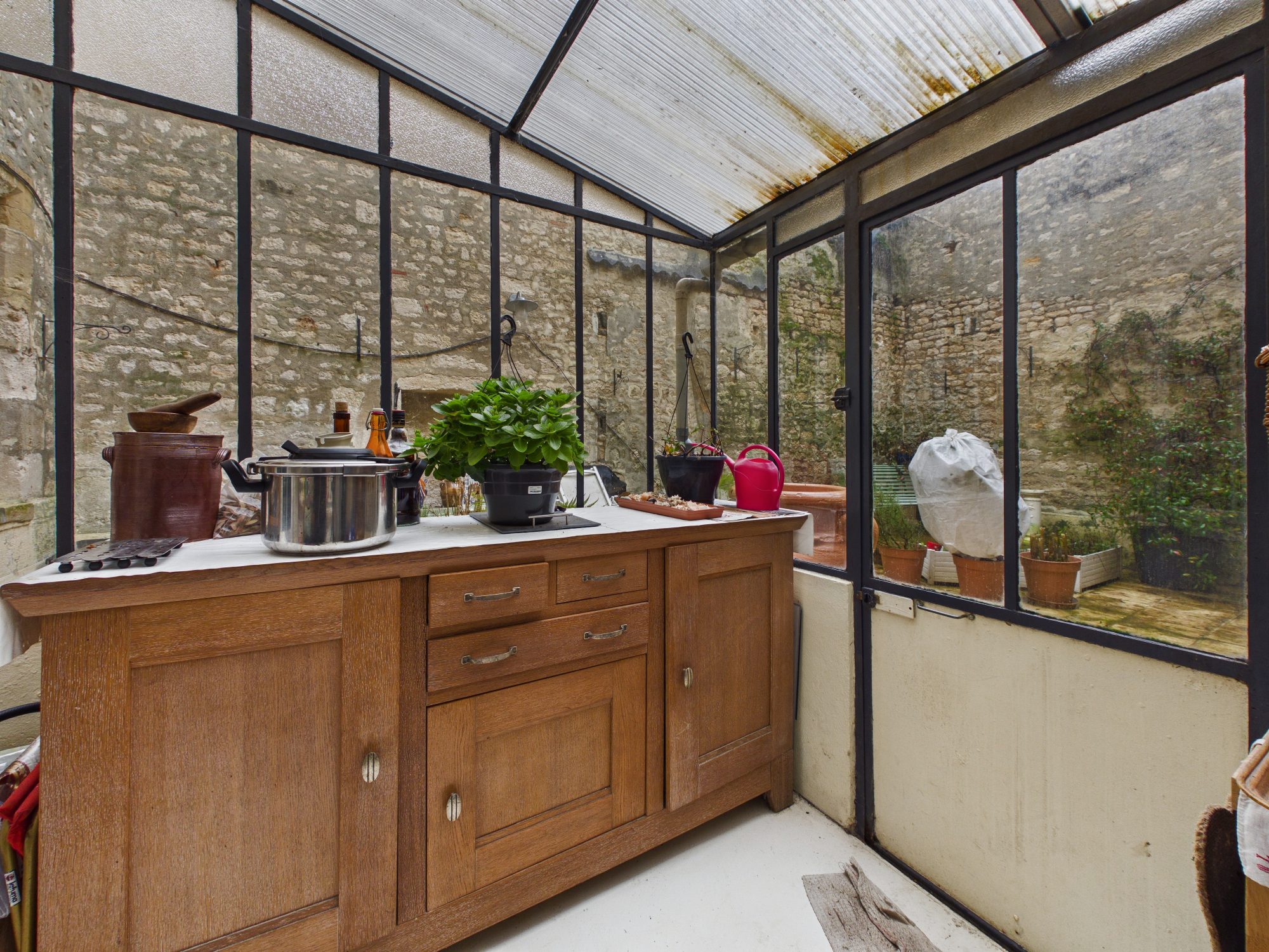 A l’extérieur une véranda qui donne accès au jardin entièrement clos, avec un accès ruelle indépendante.