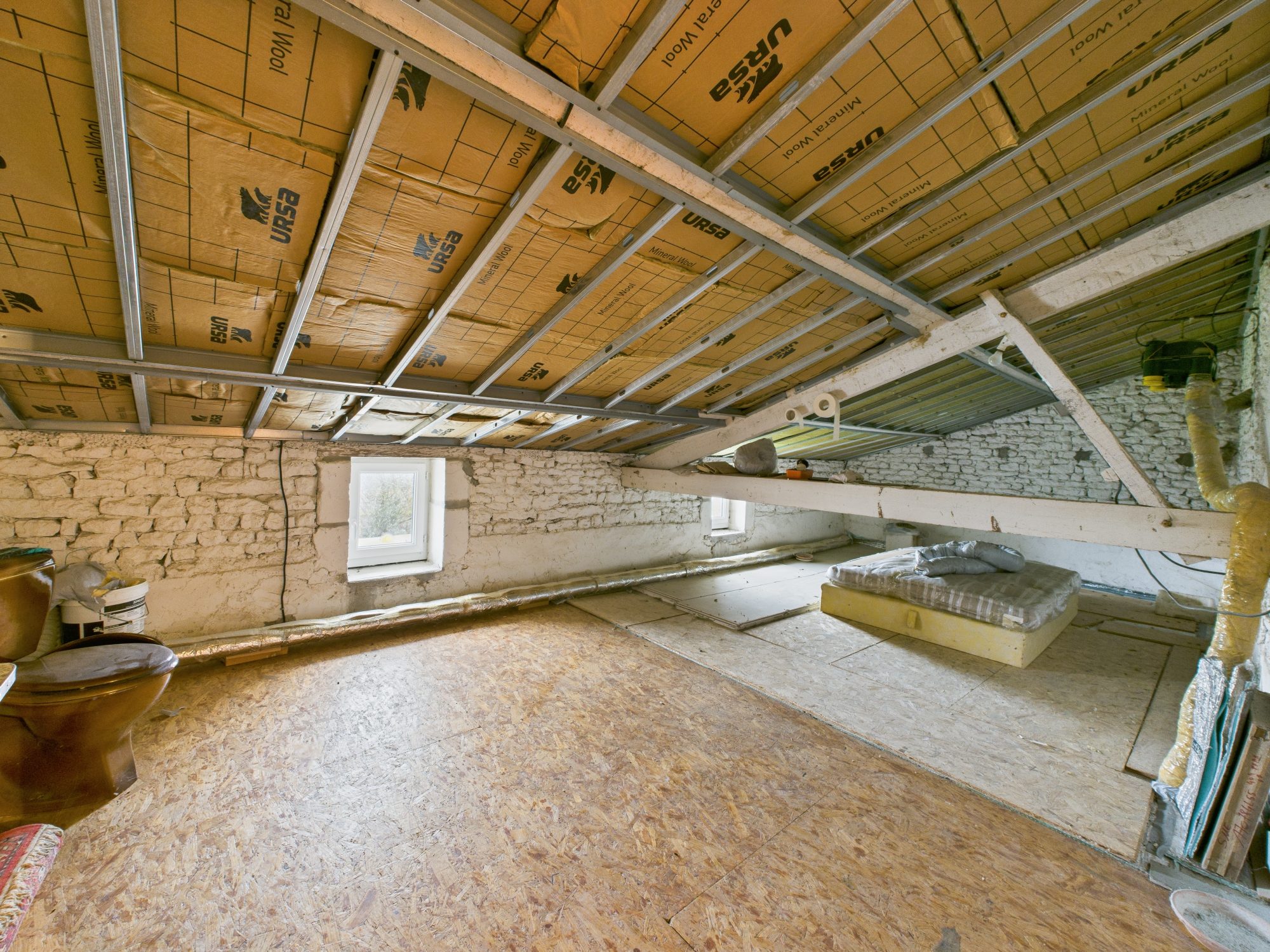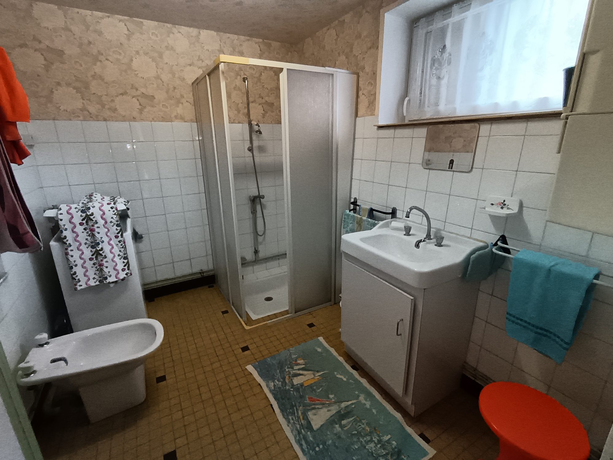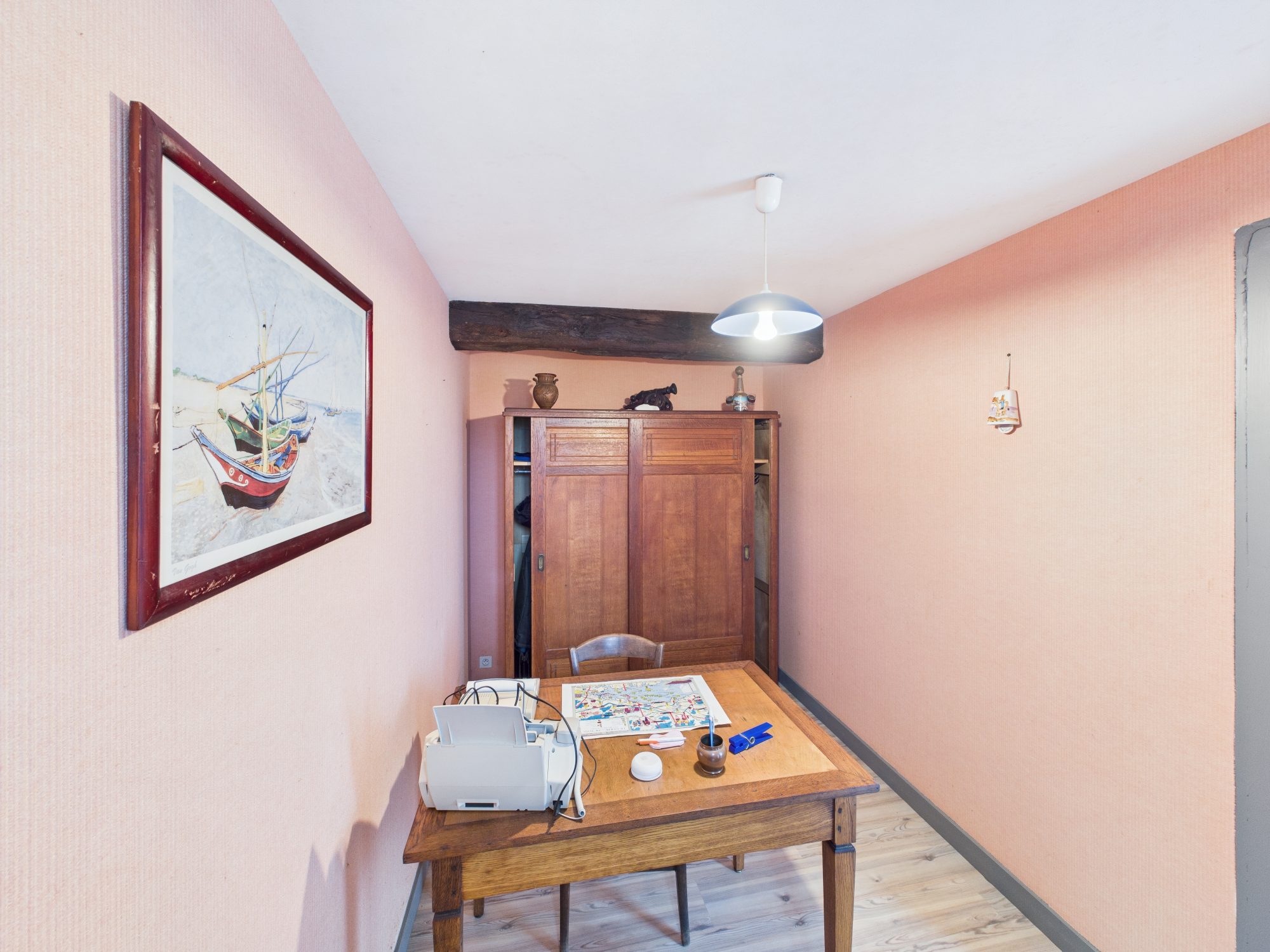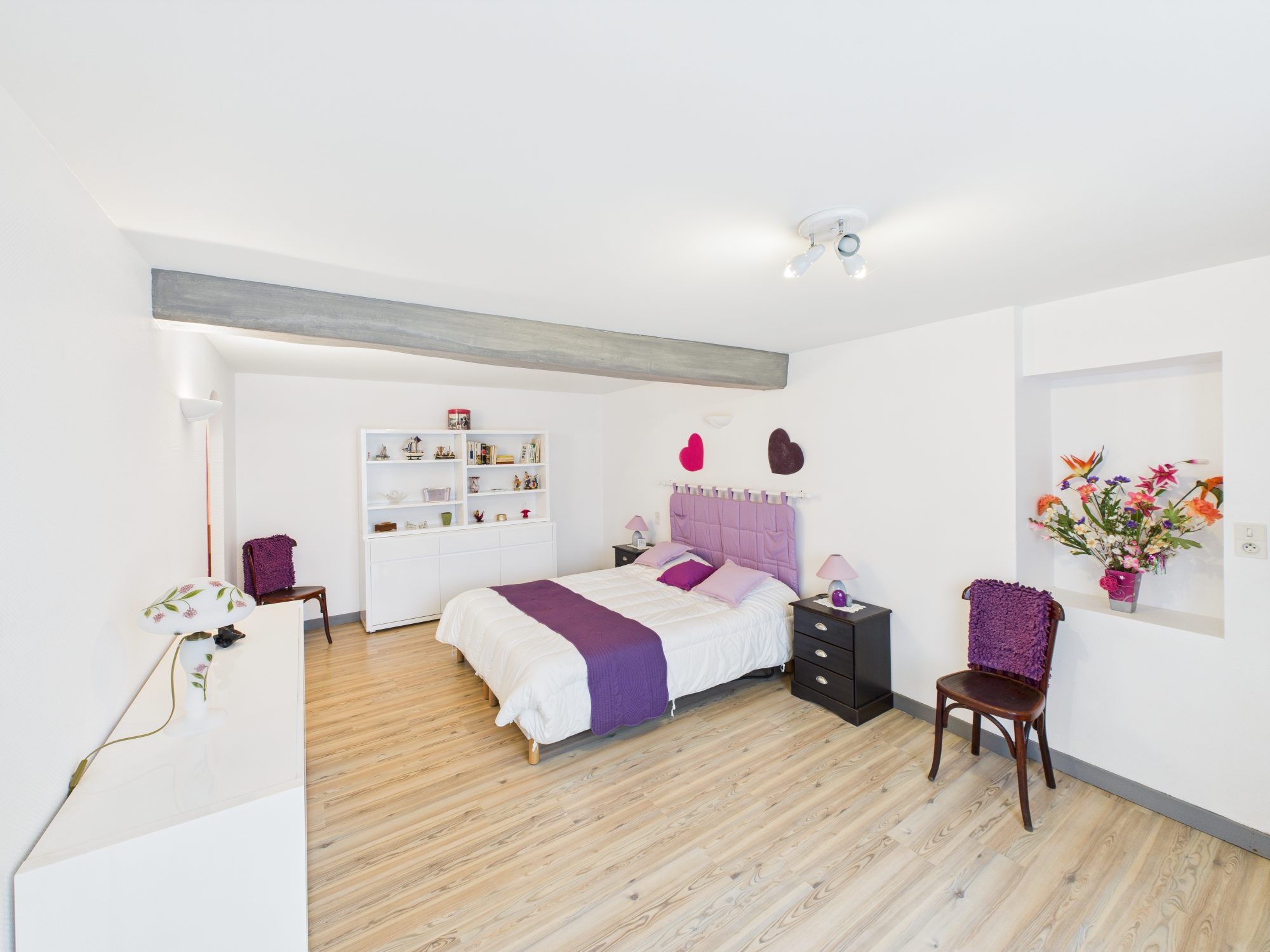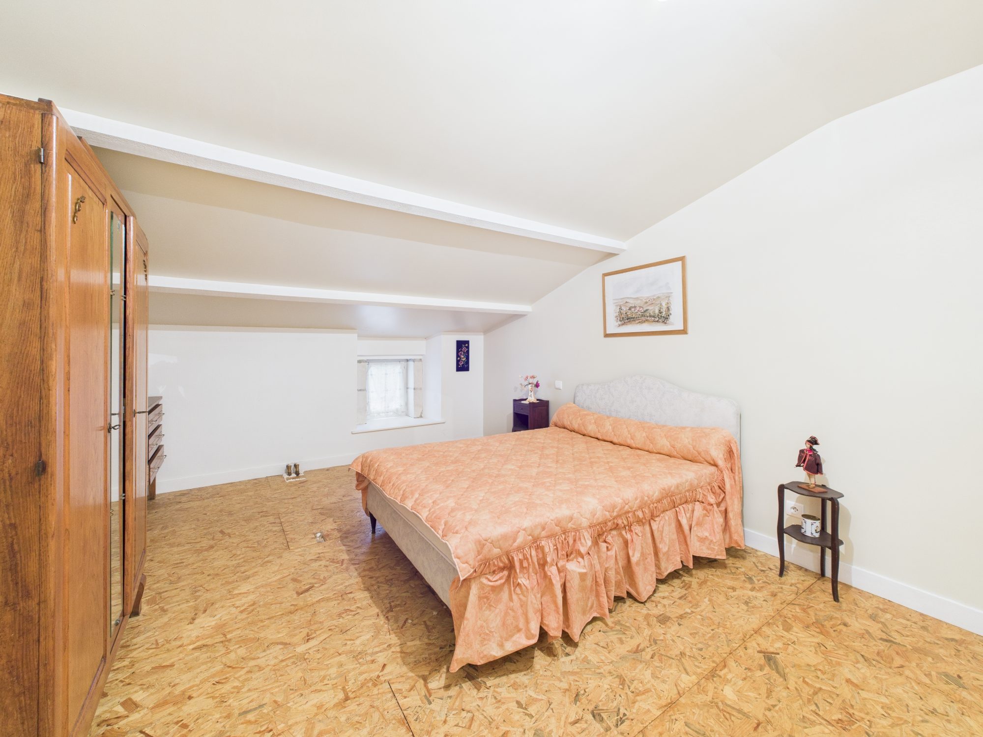 À l’étage, vaste palier servant de chambre d’appoint pouvant être aménagé en la pièce de votre choix, deux grandes chambres. Deux greniers se trouvent sur ce même étage dont un qui est prêt à accueillir une salle d’eau.
