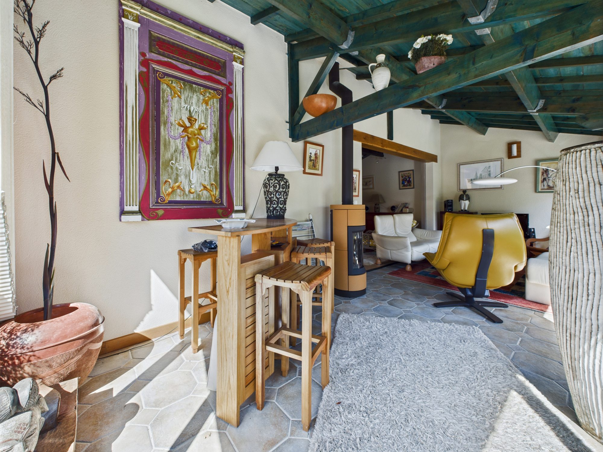 – Un vaste salon/séjour baigné de lumière avec insert bois